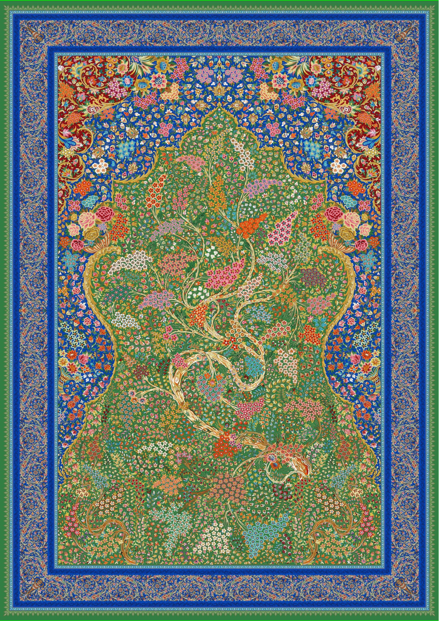 1500 tarak, %100 viskon iplikten üretilmiş, ipeksi dokunuşlu İran makina halısı. 2.250.000 düğüm/m² yoğunluk, zengin renkler, özel ebat seçeneği ve toptan satış imkanıyla her mekâna zarafet katın.