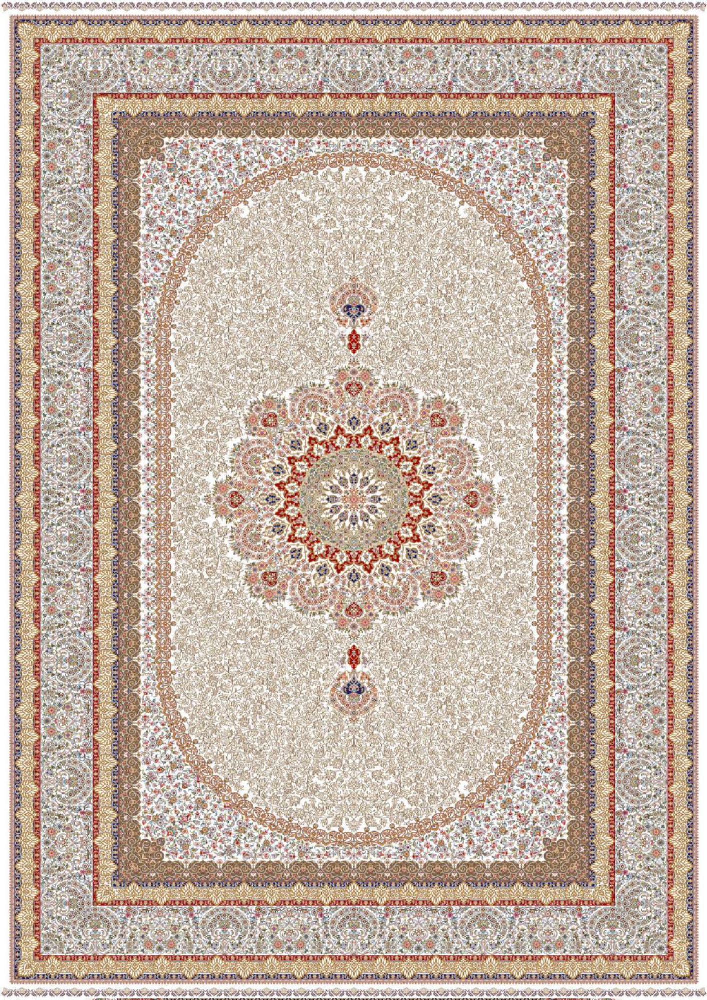 Yüksek kalite standartlarında üretilen bu özel İran makina halısı, 1500 tarak dokuma yapısı ve 4.500.000 point/m² yoğunluğu ile hem görsel zenginlik hem de dokunsal konfor sunar. Geleneksel İran halı sanatının izlerini taşıyan bu model, çağdaş zevklerle yeniden yorumlanmıştır.