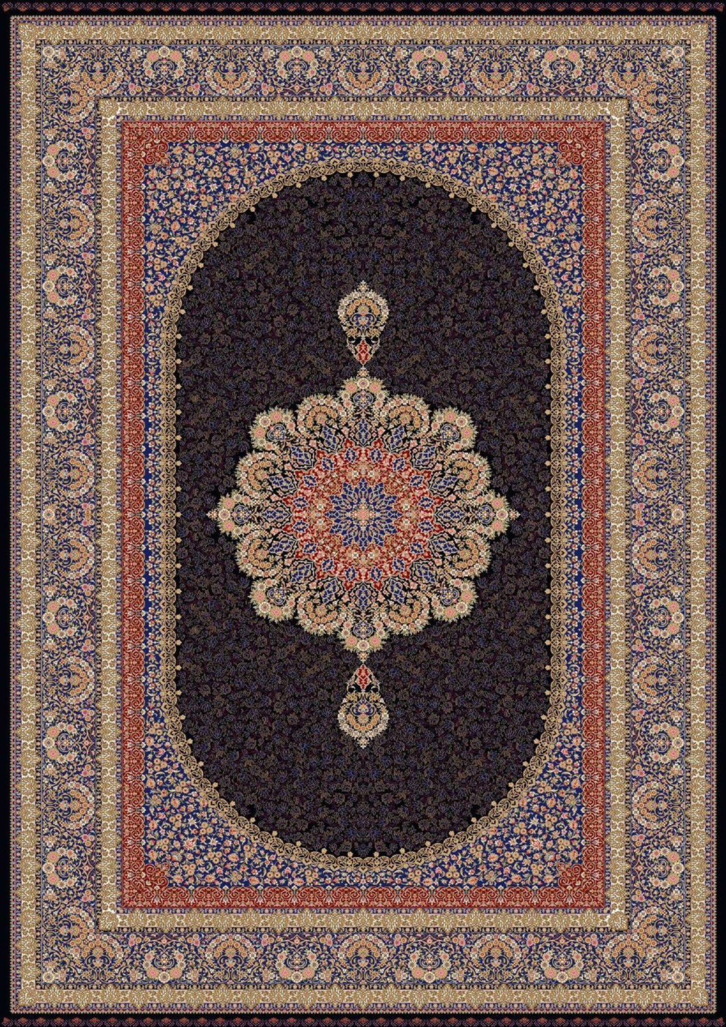 1500 tarak, %100 viskon iplikten üretilmiş, ipeksi dokunuşlu İran makina halısı. 2.250.000 düğüm/m² yoğunluk, zengin renkler, özel ebat seçeneği ve toptan satış imkanıyla her mekâna zarafet katın.